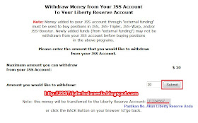 Alur withdrawalnya anda perlu mentransfer Dollar JSS Tripler >> JSS Account >> Liberty Reserve